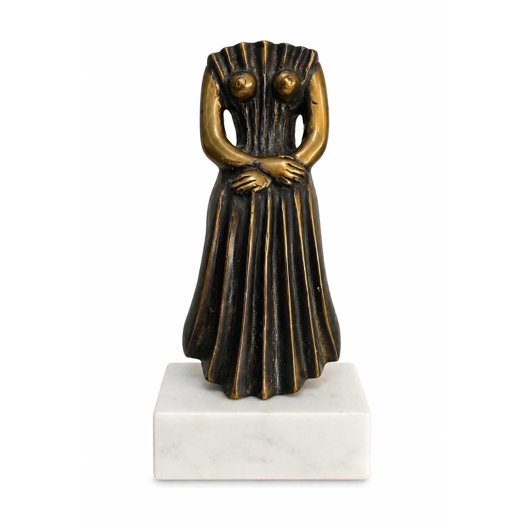 Ένα χειροποίητο γλυπτό από την Ηλιού Ρόζα, κατασκευασμένο από μπρούτζο και τοποθετημένο πάνω σε μαρμάρινη βάση.